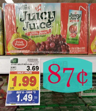 Grab Juicy Juice boxes or Bottles as low as 87¢ in the Kroger mega sale.