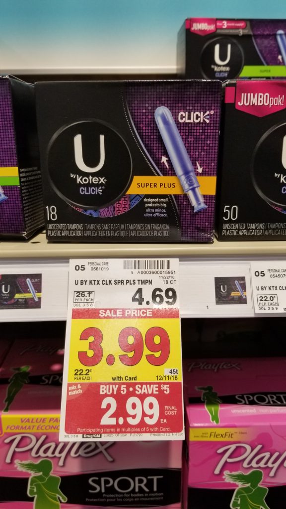 Buy: (1) U by Kotex, $2.99 wyb 5 mega sale items