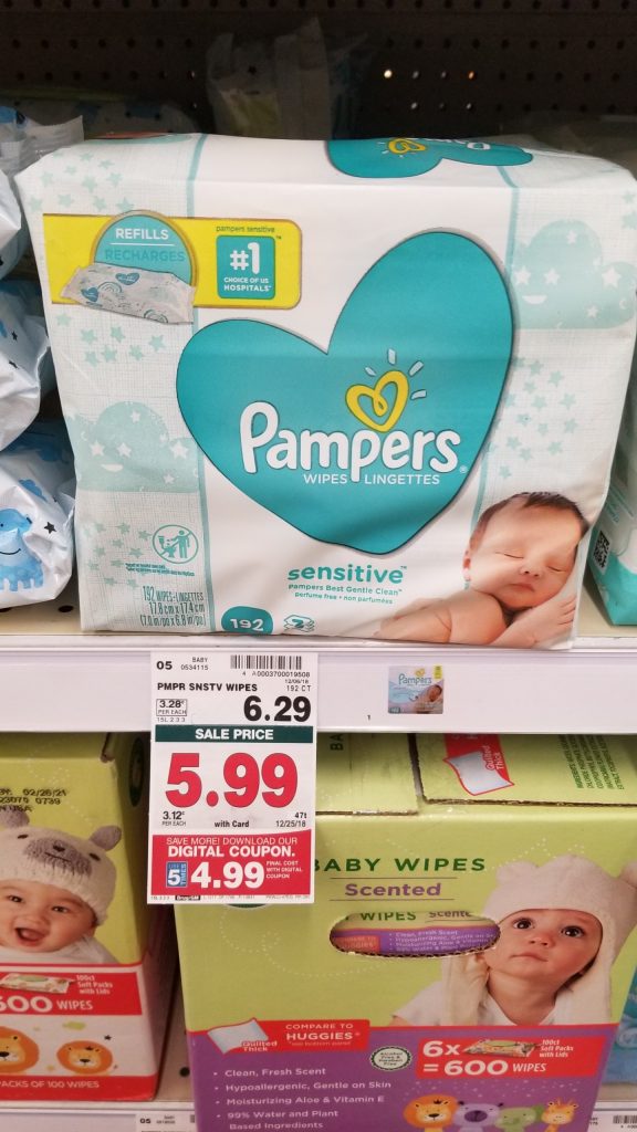 And Use: (2) $1.00/1 Pampers Wipes, 168-216 count Kroger Digital Coupon – Limit 5 (exp 12/25/18)