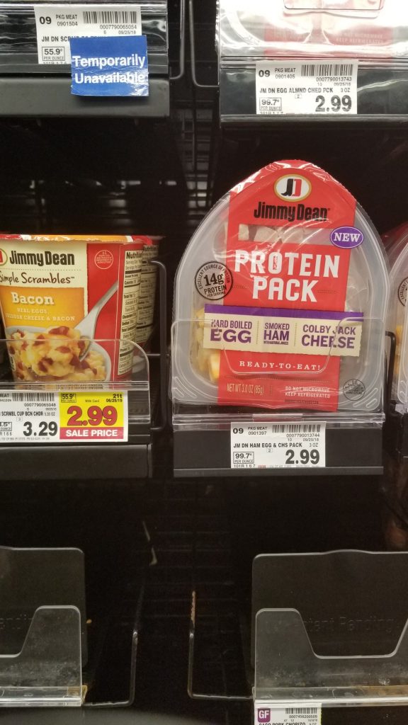 Use: (1) $1/1 Jimmy Dean Protein Pack, any variety (3oz) Kroger Digital Coupon