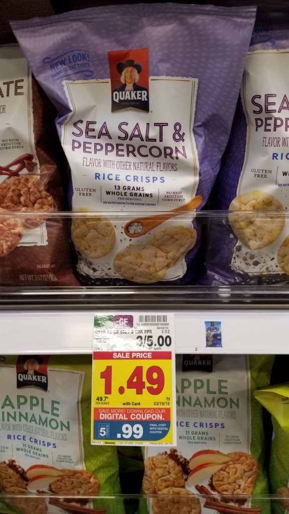 Quaker Rice Snacks are on this week for $1.49! And, if you use the Quaker Rice Crisps Kroger Digital Coupon you can save a little more!