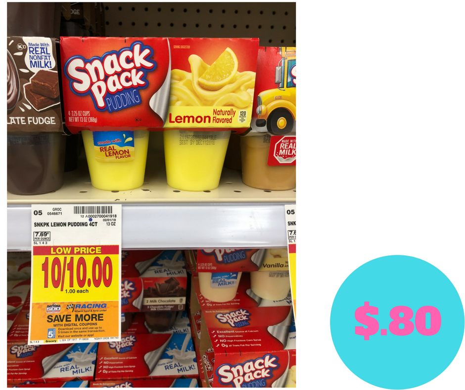 Do you love pudding?? Here’s a deal for you! It’s a great deal put in the kiddo’s lunch box. Hunt’s Snack Pack’s are on sale for $1.00/ And, there’s the new digital coupon for Save $2.00 on 10 Chef Boyardee® or Snack Pack when you buy TEN (10) Chef Boyardee® (7.25-15oz) or Snack Pack (4pk), Mix and Match your favorites! Exp 02/21/2018 making them just $.80 per pack when you buy 10!