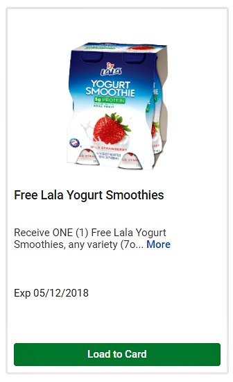 Check your Kroger digital account for this FREEBIE! Load your coupon and pick up a 4 pack of LaLa Yogurt Smoothie drinks at Kroger (regular $3.49)!