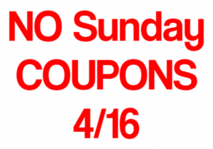 NO Sunday Coupons This Weekend due to Easter Holiday!