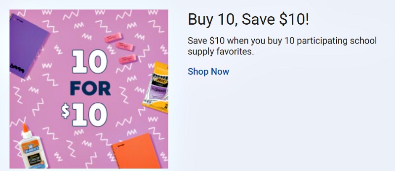 Save $10 when you buy 10 participating school supply favorites at Kroger.