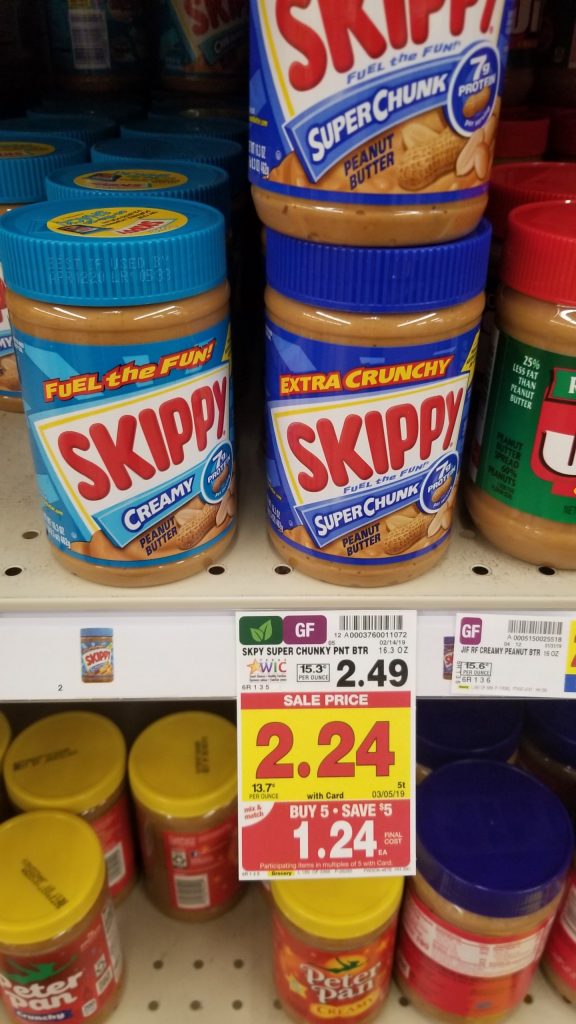 Buy: (2) Skippy Peanut Butter, 15.3 oz, $1.24 wyb 5 mega sale items thru 3/5 Use $0.55/2 Skippy Peanut Butter printable