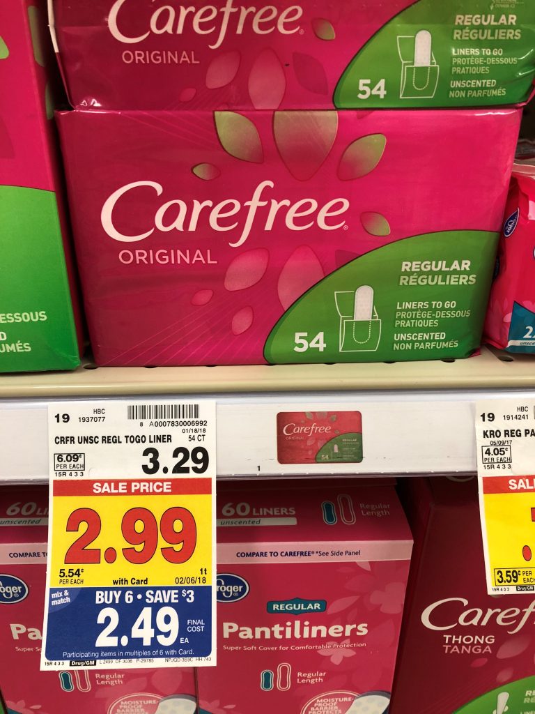 Use: $1.00/1 Carefree Product – 1-6-19 SS; Excludes 18, 20, and 22 ct Liners (exp 02/02/19)