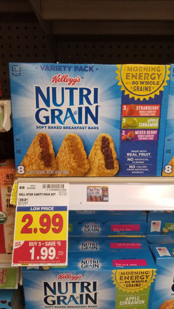 Buy: (1) Kellogg’s Nutrigrain Bars, Select Varieties, 5 to 8 ct, $1.99