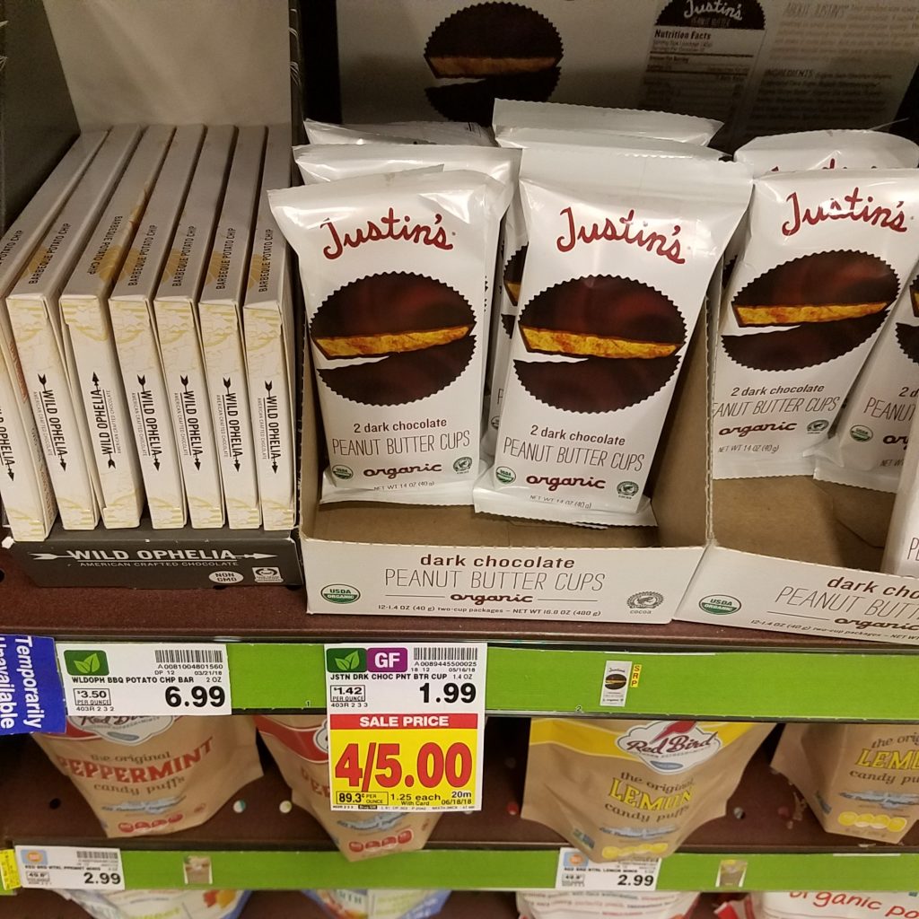 Justin’s Organic Peanut Butter Cups, select varieties, 1.4 oz, 4/$5 (Reg. $1.79) Through 6/18