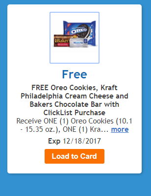 This is by far my favorite Clicklist Bundle! I mean nothing is better than Oreo balls at Christmas time! I think Kroger just told me the dessert that I need to make for our family get together! Remember that you need to spend $50 on your Clicklist order to grab this! You can grab Oreo Cookies, Kraft Philadelphia Cream Cheese and Bakers Chocolate Bar with this coupon!