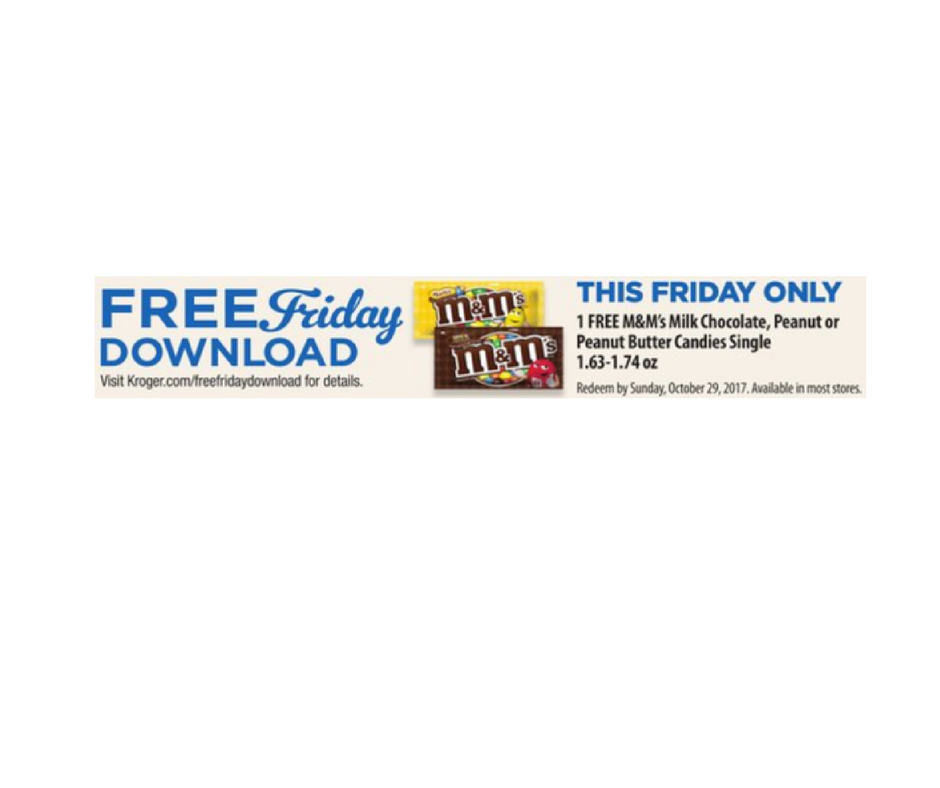 Today’s FREE Friday Download Is free M&M’s single packs! I’m heading to the store today so I think I will use this to my advantage and grab these as Little Miss Kroger Couponing and count it as a treat! Remember that you must download this coupon today.