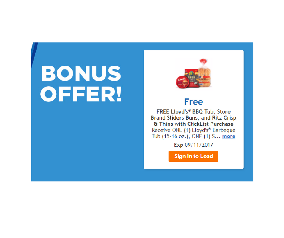 There is a new Clicklist Freebie Bundle! This bundle includes Lloyd’s BBQ Tubs, Store Brand Slider Buns, and Ritz Crisp & Thins! You can load the coupon to your account. It expires on 9/11/17!