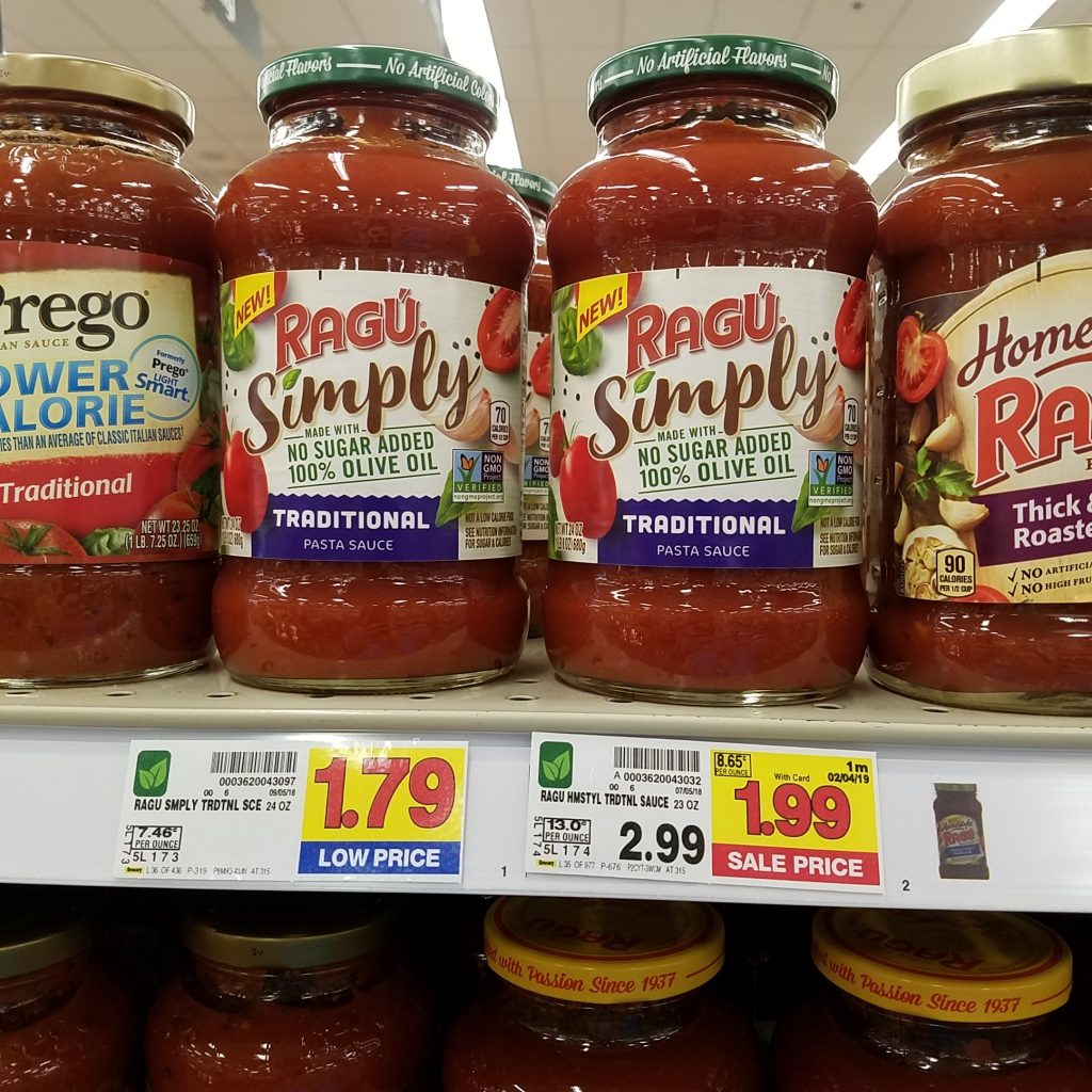 Use: (1) $0.75/1 Ragu Simply Pasta Sauce, 08/26 SS (exp 9/23) [24-oz.]