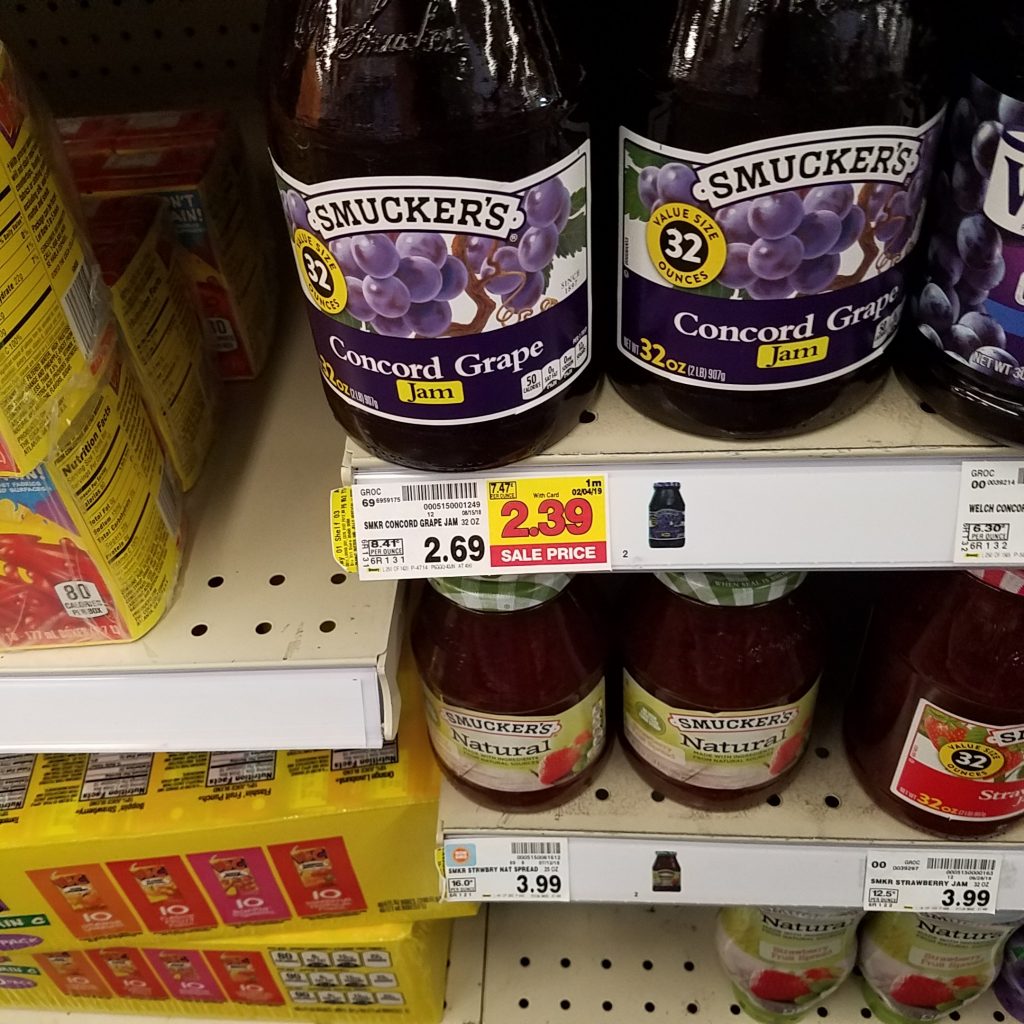 Buy: (1) Smucker’s Concord Grape Jelly, 32oz, $2.39 (reg $2.69) thru 2/3