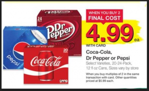 Pepsi, Coke or Dr. Pepper Cubes, 20 to 24-pack, 12oz cans $4.99 (WHEN YOU BUY 2)