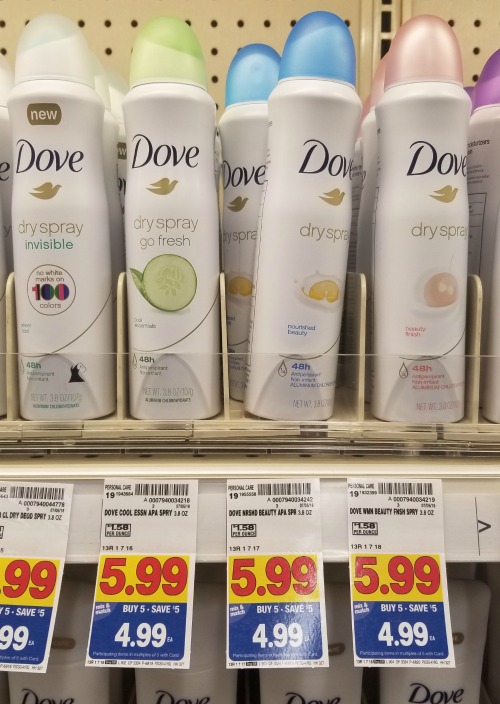 Print your big Dove Dry coupons. Pick up a nice savings on the dry spray deodorant in the Kroger mega sale.
