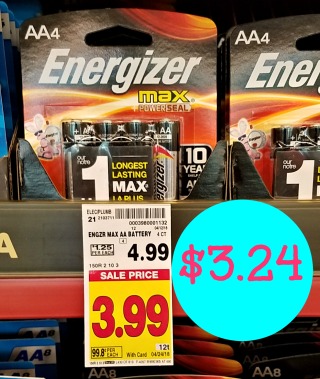 Energizer AA Batteries, 4 ct, $3.99 thru 4/24