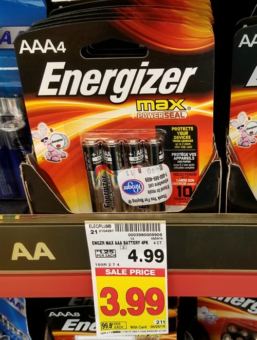 Print the new Energizer coupon and save on batteries at Kroger! Pick up packs for just $4.44.