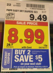 use (5) $2/1 Pampers Diapers printable coupon here (IF you store doesn’t limit your printed coupons)