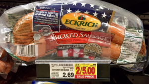 or $1.25/2 Eckrich Smoked Sausage Kroger Digital Coupon (limit 1)