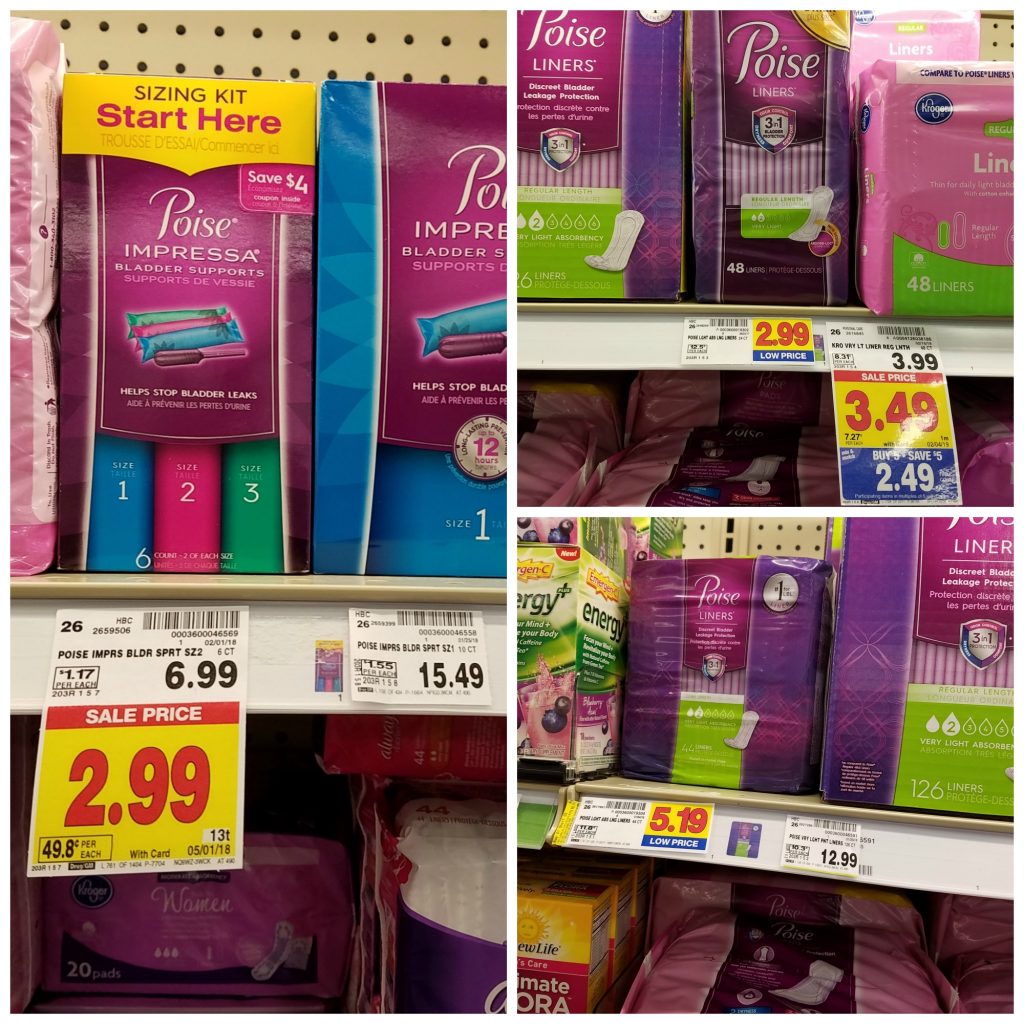 Print the new Poise and Depend coupons. The Poise products are part of the Kroger mega sale. Pick up a nice savings!