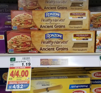 –$0.50/1 Ronzoni Healthy Harvest or Ancient Grains Pasta (12 oz) [Kroger 5x Digital Coupon] Exp 05/08/2018