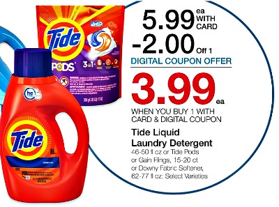 Buy(1): Tide Laundry Detergent or Pods, $4.99