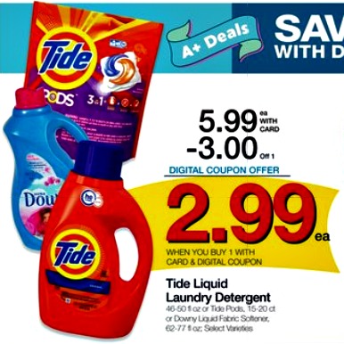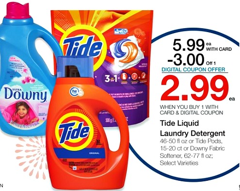 Tide Liquid or Pods or Downy Fabric Softener, $5.99