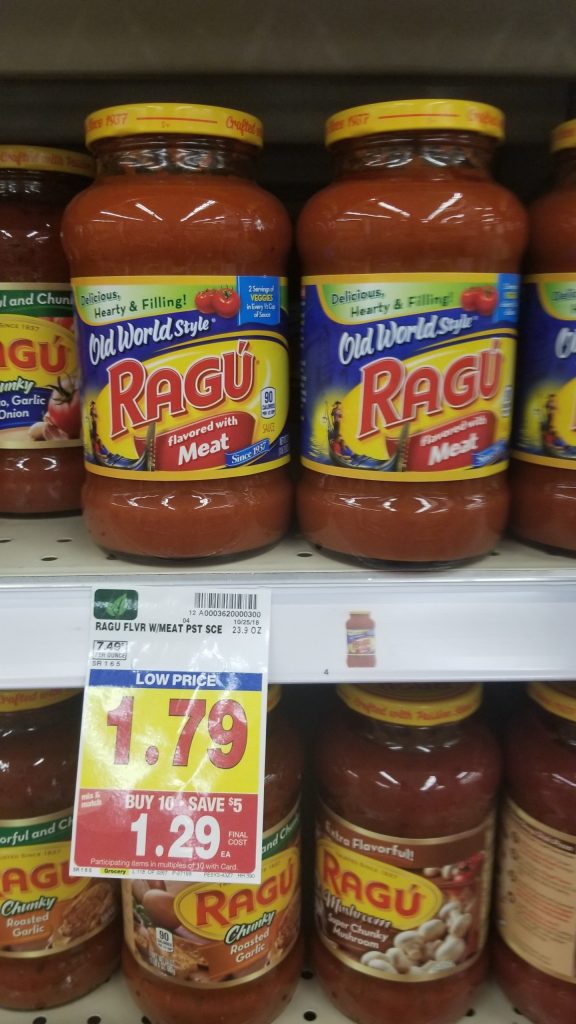 Buy: (2) Ragu Pasta Sauce, 24oz, $1.29 (reg $1.99) thru 11/13